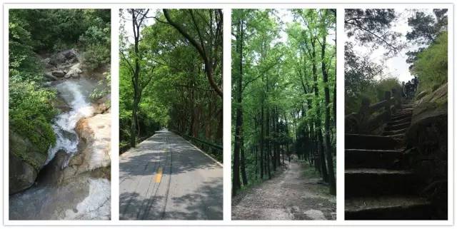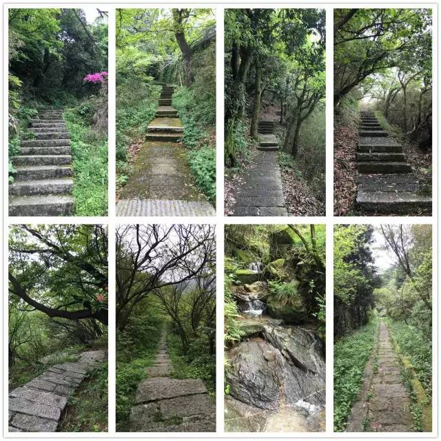 石板路上布满青苔,满满的年代感,路两旁的树遮天蔽日,一片绿油油之中,不时参杂着映山红,花开得娇艳夺目。每走一小段距离,就能看到有山涧潺潺流过,还能不时听到山间哗哗的瀑布声。风声水声伴着不曾间断的各种鸟叫声,宛如一曲大自然的绝美演奏。山间的雾还没散尽,朦脓之间,景色美得让人感觉不真实。神话故事里,这种情形下常会出现猛虎蟒蛇挡道。我在背包里翻出随时携带的瑞士军刀,在路旁锯了一根竹子,既能当登山杖,又能开山劈岭、斩妖除魔。