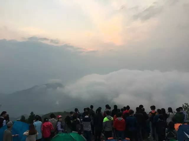我昨晚认识的那几个小伙伴也正好起来了,我们一起赶到望日台。望日台搭满了帐篷,五颜六色的帐篷在微微光亮的清晨,非常地耀眼美丽。台阶上也已经坐满了人,有的人在谈天说地,洋溢着兴奋劲;有的人披着租来的军大衣,冻得瑟瑟发抖;有的人睡眼朦胧,一脸疲惫。